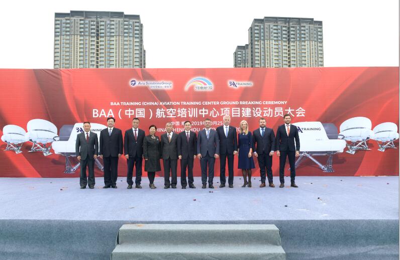 On the morning of 25th, October, the first aviation training project in central China ——BAA (China) started to construct . The project fills the gap of Henan aviation training industry and further improves the Henan civil aviation industry chain. Zhang Mingchao, Chairman of HNCA, Liu Jianbao, General Manager of HNCA, Gediminas, Chairman of Lithuania Avia Solutions Group, Vygaudas, Director of Lithuania Avia Solutions Group, Egle, General Manager of Lithuania BAA Training, Tomas, General Manager of AviaAM Financial Leasing (China) Co., Ltd., and Aurimas, General Manager of BAA (China) Aviation Training, laid the foundation for the project together.