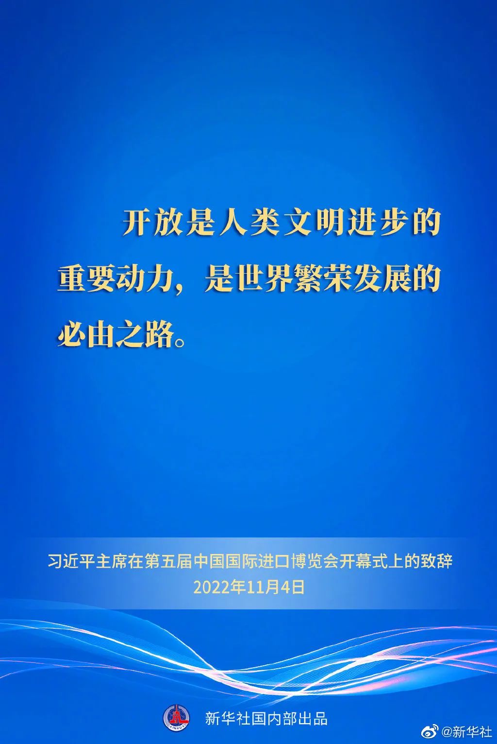 11月4日晚,國家主席習(xí)近平以視頻方式出席在上海舉行的第五屆中國國際進(jìn)口博覽會開幕式并發(fā)表題為《共創(chuàng)開放繁榮的美好未來》的致辭。