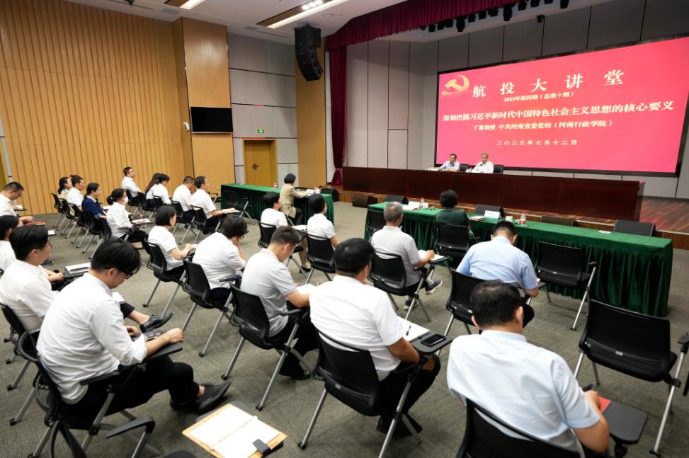 為深入推進(jìn)學(xué)習(xí)貫徹習(xí)近平新時(shí)代中國(guó)特色社會(huì)主義思想主題教育,7月12日下午,河南航投集團(tuán)黨委召開(kāi)理論學(xué)習(xí)中心組集體學(xué)習(xí)(擴(kuò)大)報(bào)告會(huì),邀請(qǐng)中共河南省委黨校(河南行政學(xué)院)教授丁素作報(bào)告。