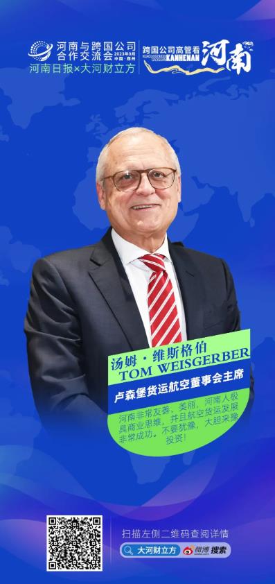 9月5日,盧森堡貨航董事會(huì)主席湯姆·維斯格伯前來(lái)鄭州參加河南和跨國(guó)公司交流合作會(huì),同行的還有盧森堡貨航總裁兼首席執(zhí)行官理查德·福森,兩位負(fù)責(zé)人聯(lián)袂遠(yuǎn)道而來(lái),足見(jiàn)他們對(duì)河南的重視。