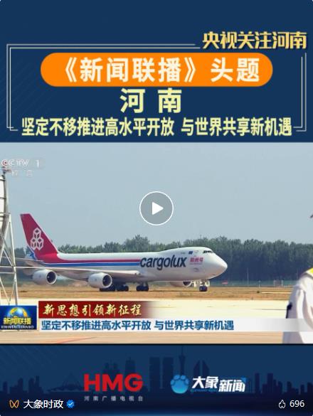 8月25日,中央廣播電視總臺《新聞聯(lián)播》頭題播發(fā)“堅定不移推進高水平開放 與世界共享新機遇”主題報道,關注“空中絲綢之路”建設情況。