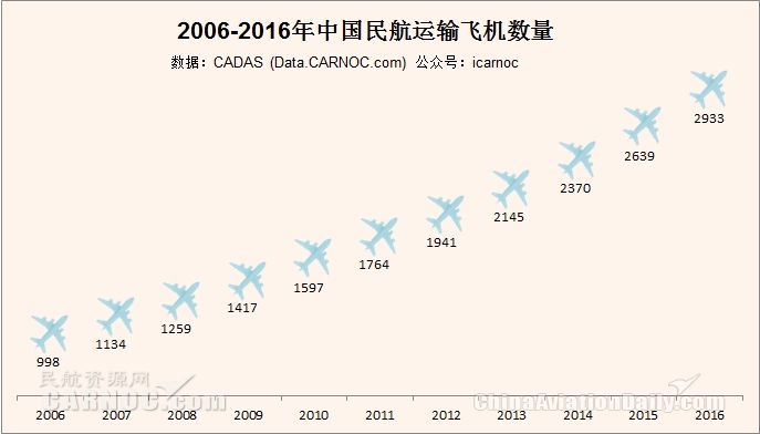 2016國內(nèi)民航機(jī)隊(duì)達(dá)2933架 全年引進(jìn)369架