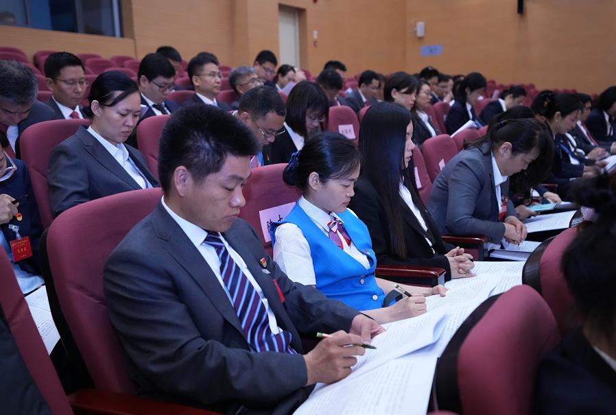 集團(tuán)黨委書記、董事長(zhǎng)張明超代表集團(tuán)黨委向大會(huì)作報(bào)告,與會(huì)代表在現(xiàn)場(chǎng)認(rèn)真聆聽。