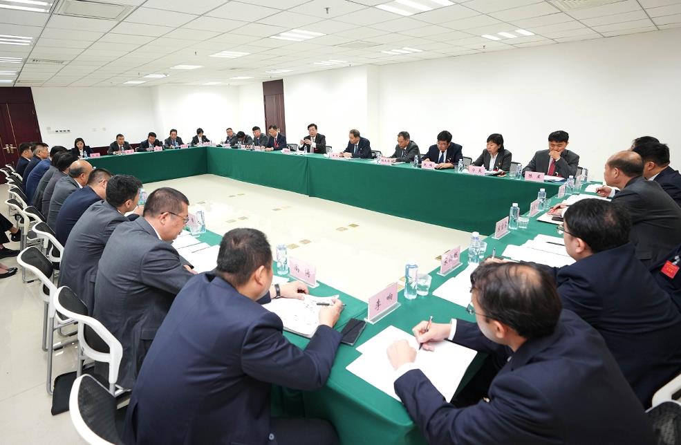 集團(tuán)領(lǐng)導(dǎo)班子成員與代表們討論報(bào)告。