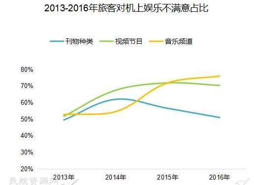 以上圖為例,音頻、視頻、旅客的滿意度一直在下降,不滿意度一直在上升。“就算機上娛樂項目更新得再快,做得再好,不可能滿足每一個旅客的個性化需求。但是只要打通了一個環(huán)節(jié),把互聯(lián)網接上了,聊微信也好,聽QQ音樂也好,還是聽其他的音樂也好,那都是旅客自己的事情,旅客滿意度會得到最大程度的提升?!?
